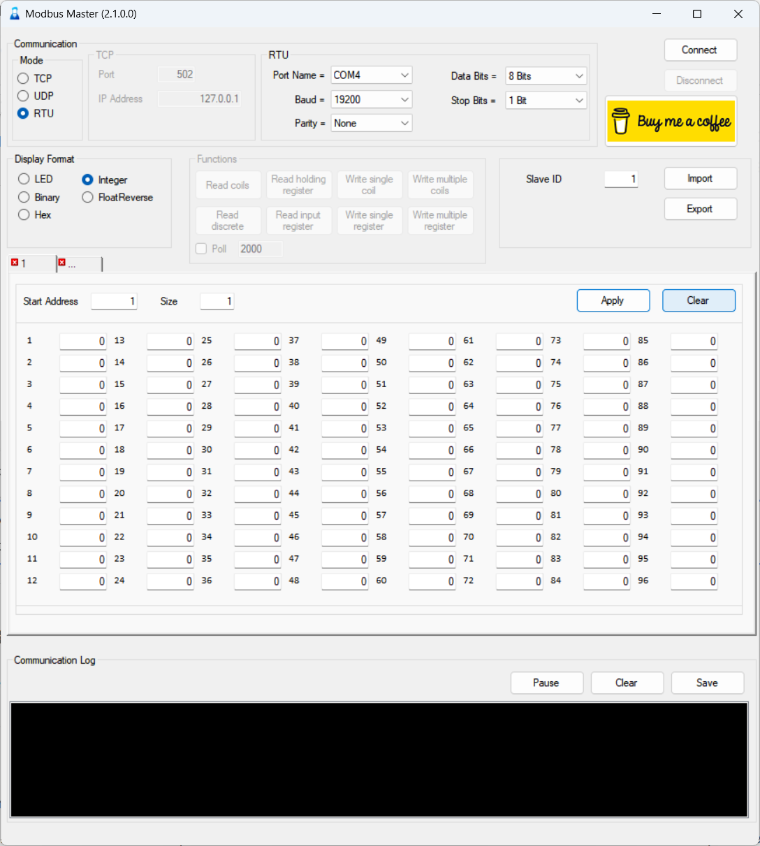 - Installare un programma MODBUS Master come ad esempio https://sourceforge.net/projects/modbus-tool/